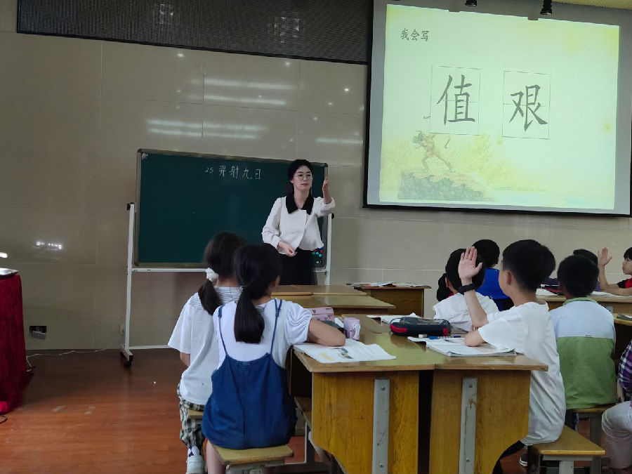 来自永嘉县千石小学的肖朗朗老师执教二下《羿射九日》,带领二年级的孩子进行神奇闯关挑战,她精心设计生字关、故事关、神奇关,关关升级,肖老师精巧板画带他们读神奇,讲神奇,其乐无穷。神奇关中神奇指数桶神奇爆棚,神奇故事大赛展示积极,她为孩子心中植一颗神奇探索之心的种子。