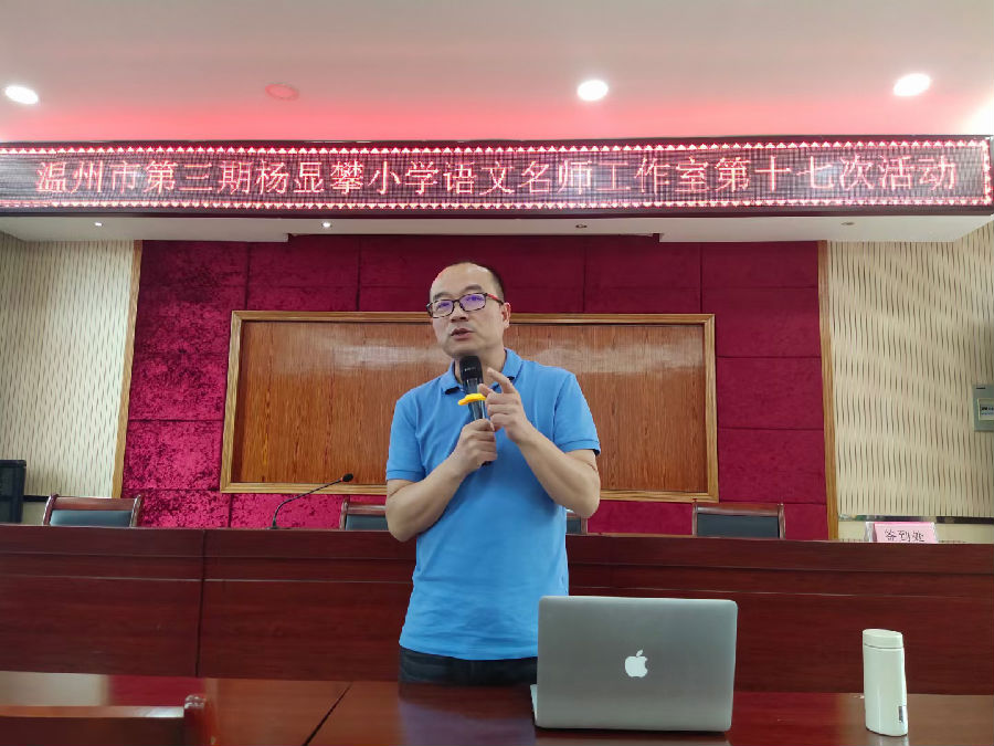 活动尾声,杨显攀老师做课例点评与观点分享。杨老师强调,千变万化,但牢记语文核心即读,反复读,层次读,感情读。围绕读,杨老师肯定《手指》执教董老师的拆读意识,《手指》风趣幽默的语言更要在不断的读中感受,《杨氏之子》中的“甚聪惠”也要有区分地读,如应声答曰,是怎么答?未闻,如何委婉读。《羿射九日》则在学生跟着执教肖老师的板画中读神奇的基础上,促进讲神奇,同时谆谆引导我们每一位学员,语文课切切不以内容分析替代学生的朗读与思考,不以框架限制学生思维。创造不限定句式,尽可以把空间还给孩子们,他们会带来意想不到的精彩。