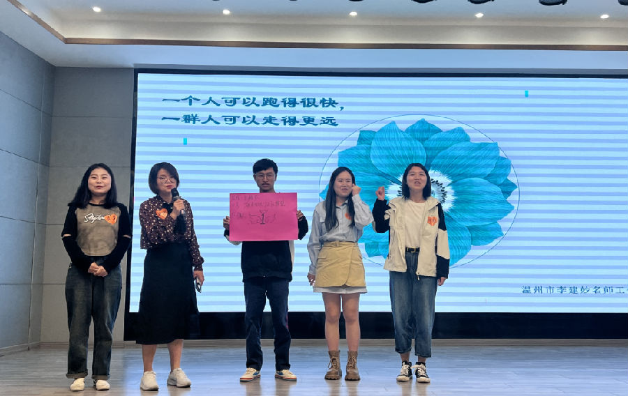 下午活动开始后,工作室全体成员开启了“破冰行动”,在温州市实验小学邵俊威老师的主持下,工作室的成员们在游戏中互相认识,交流自己在教学上的困惑,李建妙导师对学员们遇到的问题进行了分析解惑。
