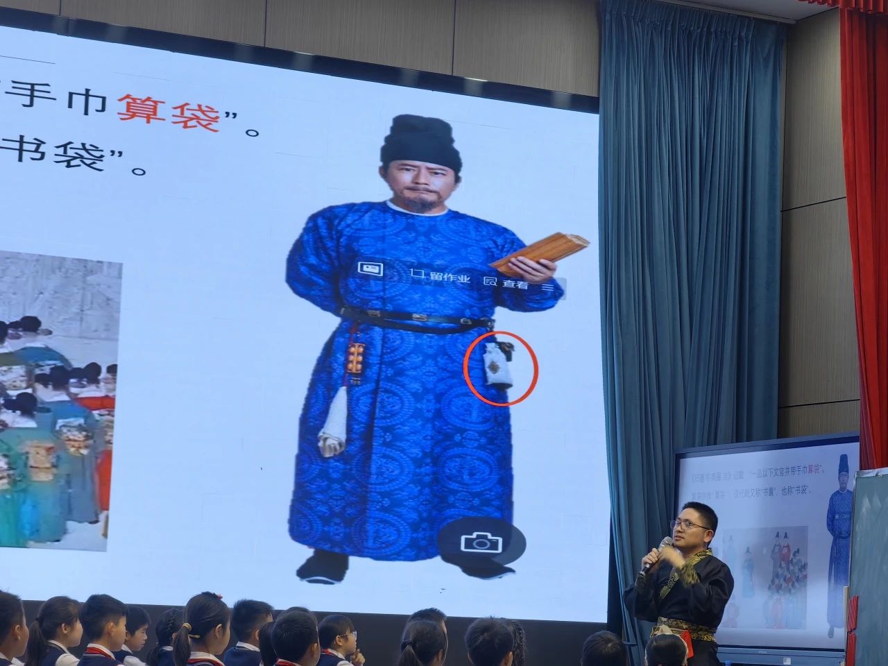 温州市教坛新秀伍渊泼老师以一身古装的形象出现在学生面前,从引人注目的腰带开始,巧妙地引入教学内容——《算筹》。伍老师的话语中透露出对古代数学文化的深刻理解,激发了学生对这门古老学问的兴趣。他以解密算筹图的深刻含义作为课程的起点,点燃了学生强烈的求知欲。通过引导学生阅读资料卡,鼓励他们自主探索算筹的摆放方式,大胆进行猜测,直到彻底理解算筹图所表达的计算方法和内涵,让学生深刻感受到这根小小的棒子所承载的悠久中国数学文化的重量。