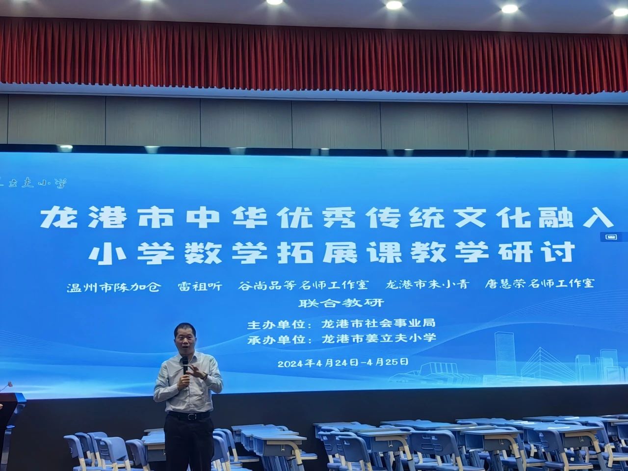 最美人间四月天,砥砺深耕行致远。为进一步促进教师专业提升、共同进步,探索“中华优秀传统文化融入小学数学课堂”设计与实施路径,2024年4月24日—4月25日,温州市雷祖听名师工作室第8次活动在龙港市姜立夫小学举行,活动过程主要有领导致辞、课例展示、观点报告等环节。