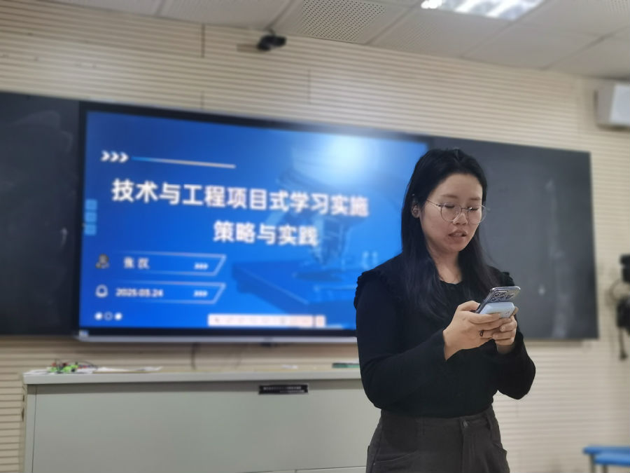 张汉老师结合课例,以《技术与工程项目式学习实施策略与实践》为题作专题讲座,强调通过真实情境驱动跨学科探究,培养解决复杂问题能力。分低、中、高段设定分层教学目标,明确角色分工。教师从“引导者”逐步过渡为“支持者”和“合作者”,通过材料清单管理、四步制作流程优化和多元评价提升效率,助力培养团队协作与创新能力。本次讲座为教师提供了项目式学习的完整实施框架,助力课堂教学从“知识传授”向“能力培养”转型。