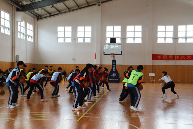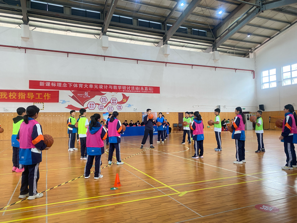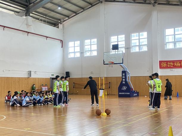 杭师大东城中学的蔡聪聪老师率先展示水平四《篮球:行进间单手肩上投篮技术方法》课例。蔡老师围绕该技术,从持球模仿等单一练习,过渡到运球传接与投篮结合的组合练习,再到绕桩 2 打 1 比赛,提升学生实战能力。同时借助 tabata 轮转开展多项体能训练,实现技术与体能协同发展,为师生提供宝贵经验。