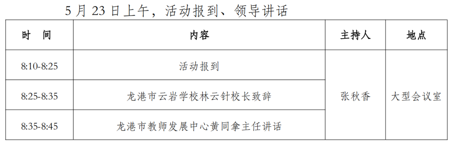 (2)5月23日:送教活动,地点:龙港市云岩学校。