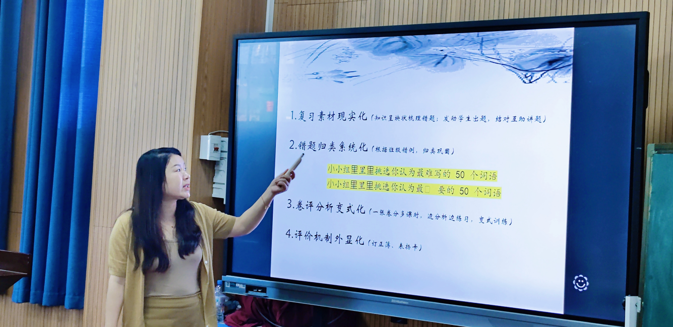 精彩的思维碰撞过后,项灵捷老师为我们带来了精彩的讲座《复习的那些事儿》。项老师从复习的本质、目标设定、策略选择等方面深入讲解,剖析复习教学的痛点与突破点。既有理论高度,又具实践可操作性,为在场的老师们厘清复习教学思路,指明专业成长方向,让大家对“如何高效地进行期末复习”有了更清晰的认知。