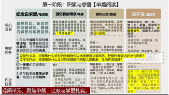 通过梳理课文、参考作业本,并重点关注阅读综合实践,小组明确了“把握关键语句,理清文章结构,汲取榜样力量,建构自我价值”的单元大概念,并确立了单元目标。